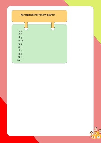 Korespondensi fonem-grafem 1.b 2.f 3.g 4.m 5.p 6.u 7.s 8.t 9.o 10.r